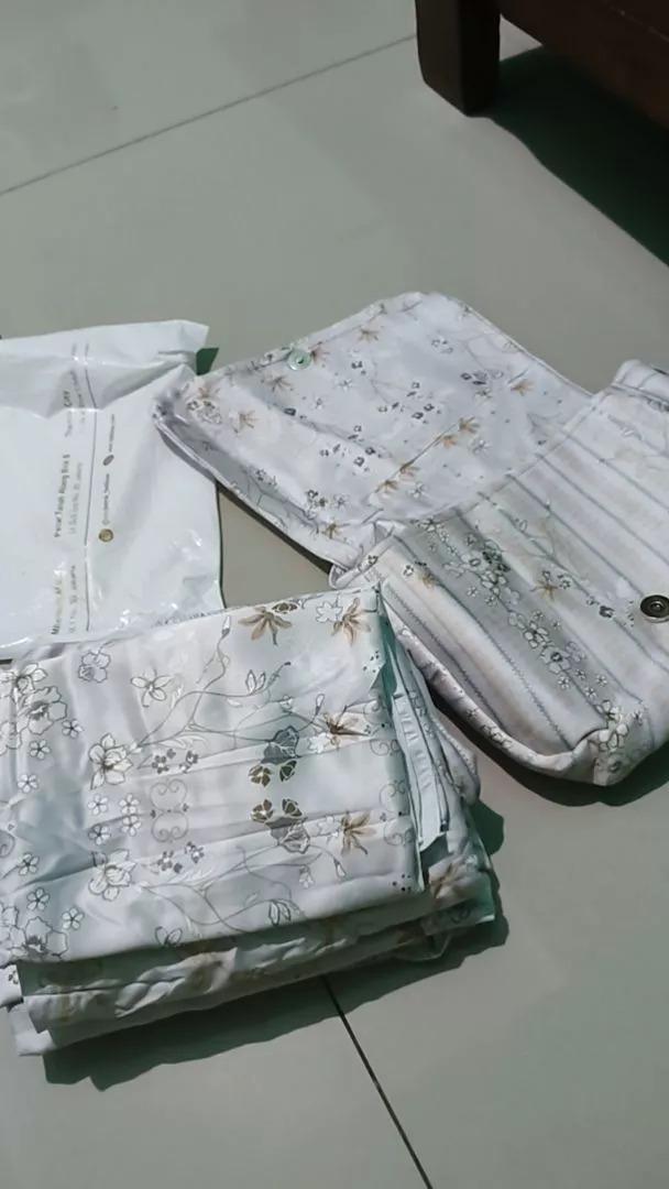 - Bagian rok mukena menggunakan karet yang tidak mudah kendor