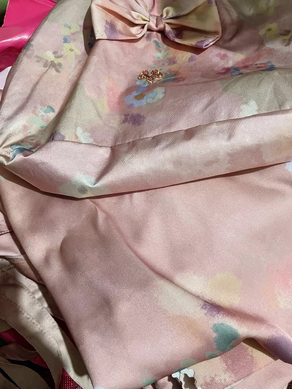 - Pouch desain puffy dilengkapi dengan pita besar yang manis serta pegangan model kerut