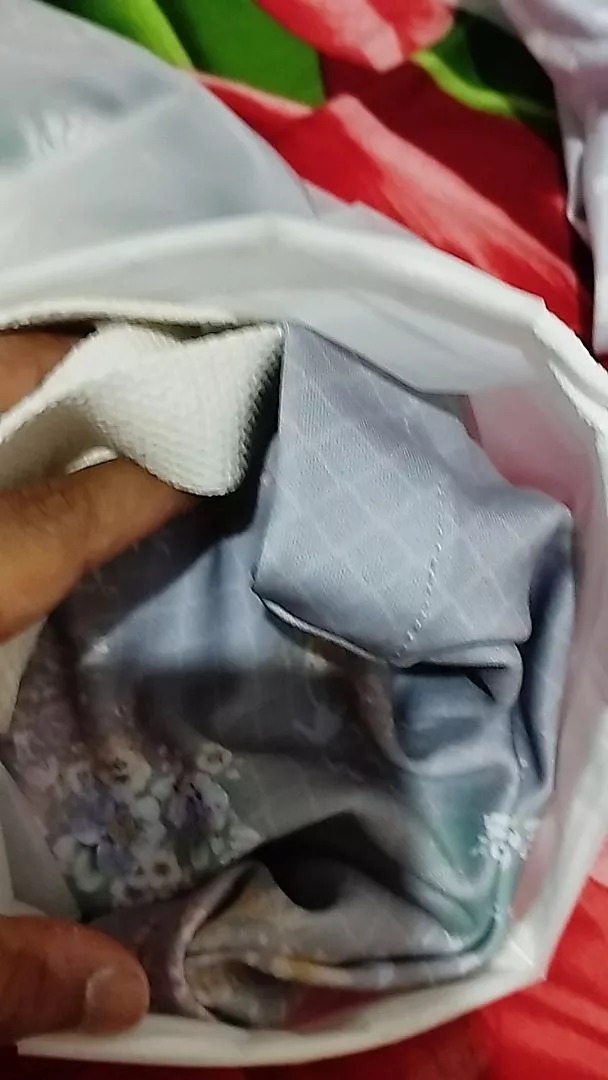 - Pouch desain puffy dilengkapi dengan pita besar yang manis serta pegangan model kerutĀ